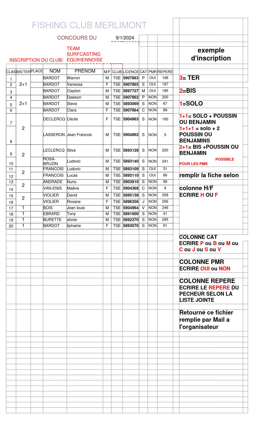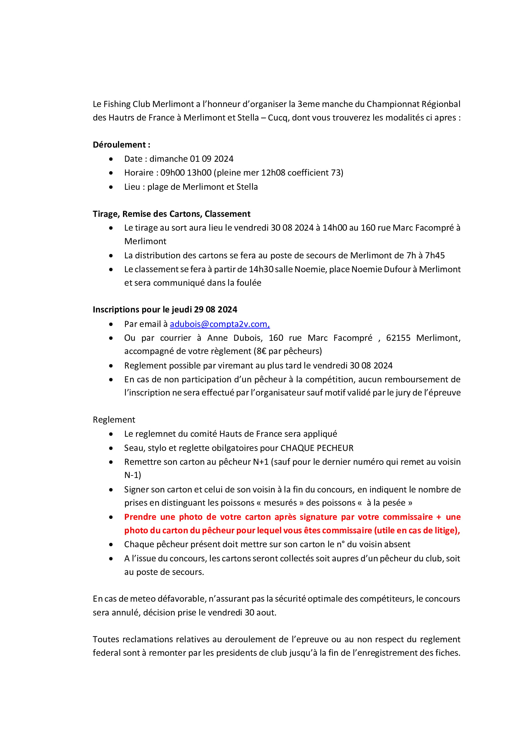 INFORMATIONS SUR LA MANCHE REGIONALE DE SURFCASTING (SEPTEMBRE 2024)