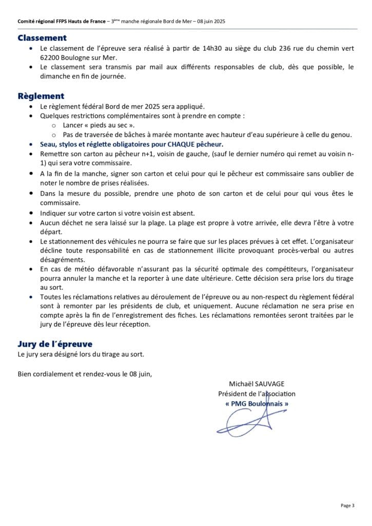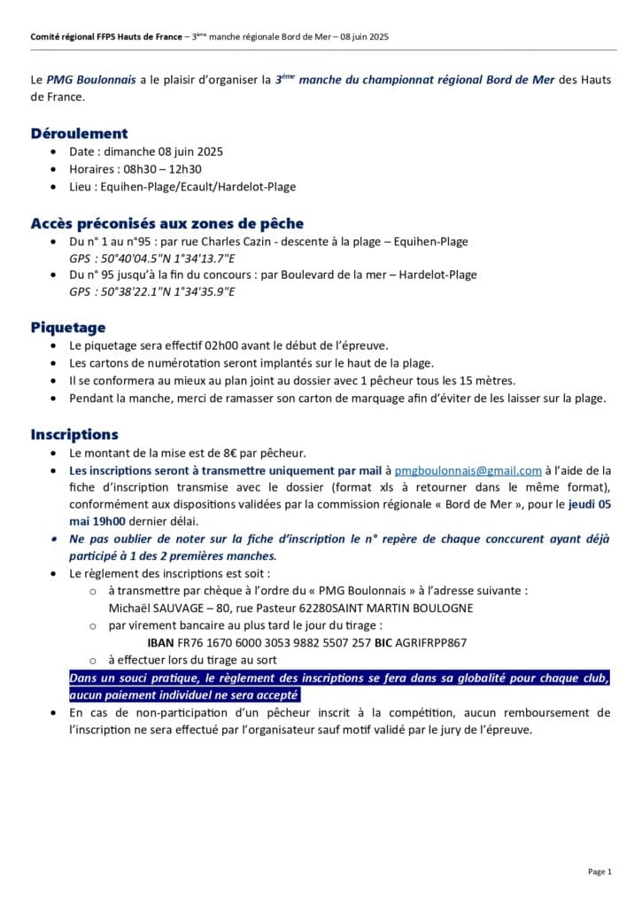 INFORMATIONS SUR LA 3ème MANCHE REGIONALE DE SURFCASTING 2025