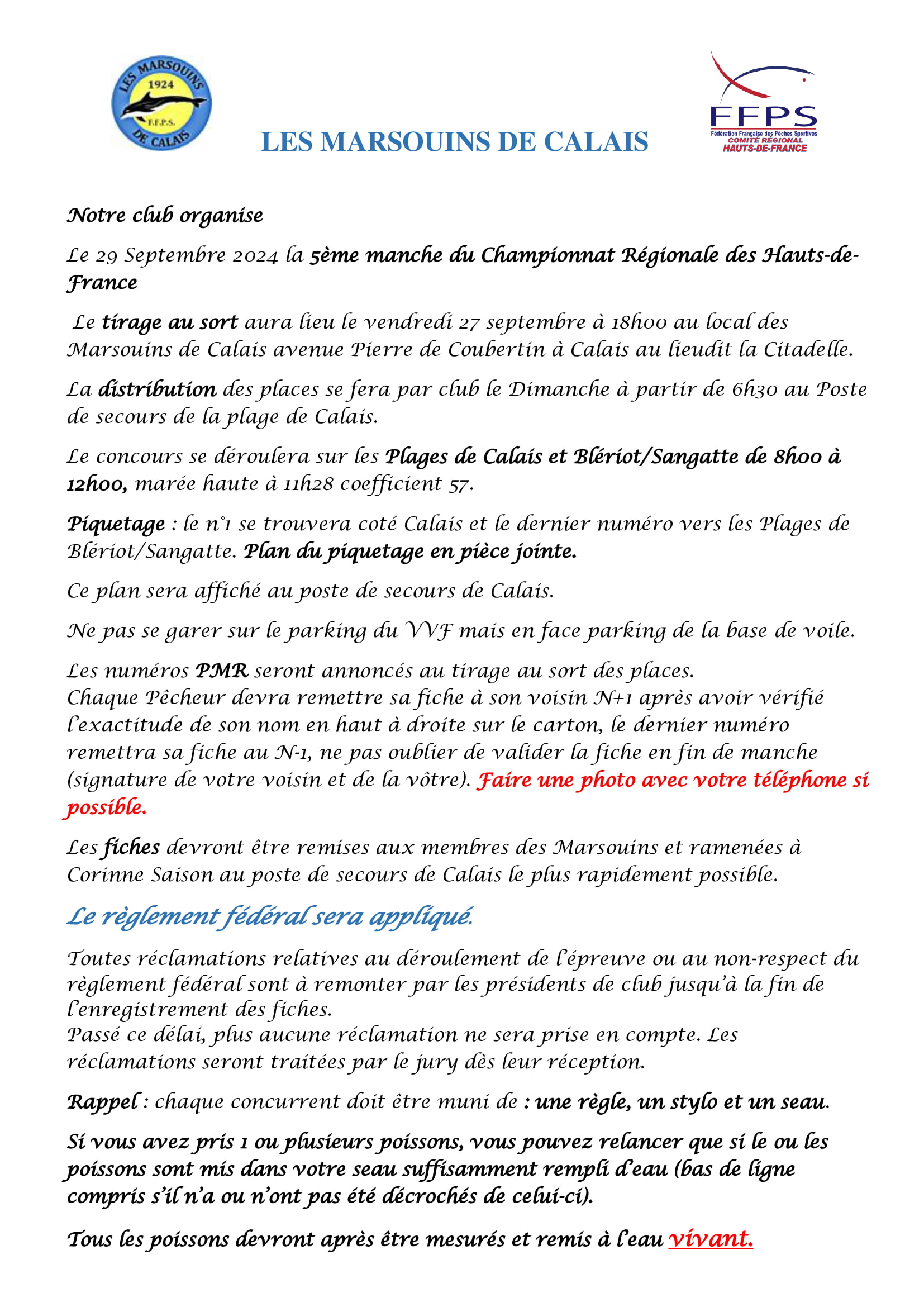 INFORMATIONS SUR LA MANCHE REGIONALE DE SURFCASTING (SEPTEMBRE 2024)