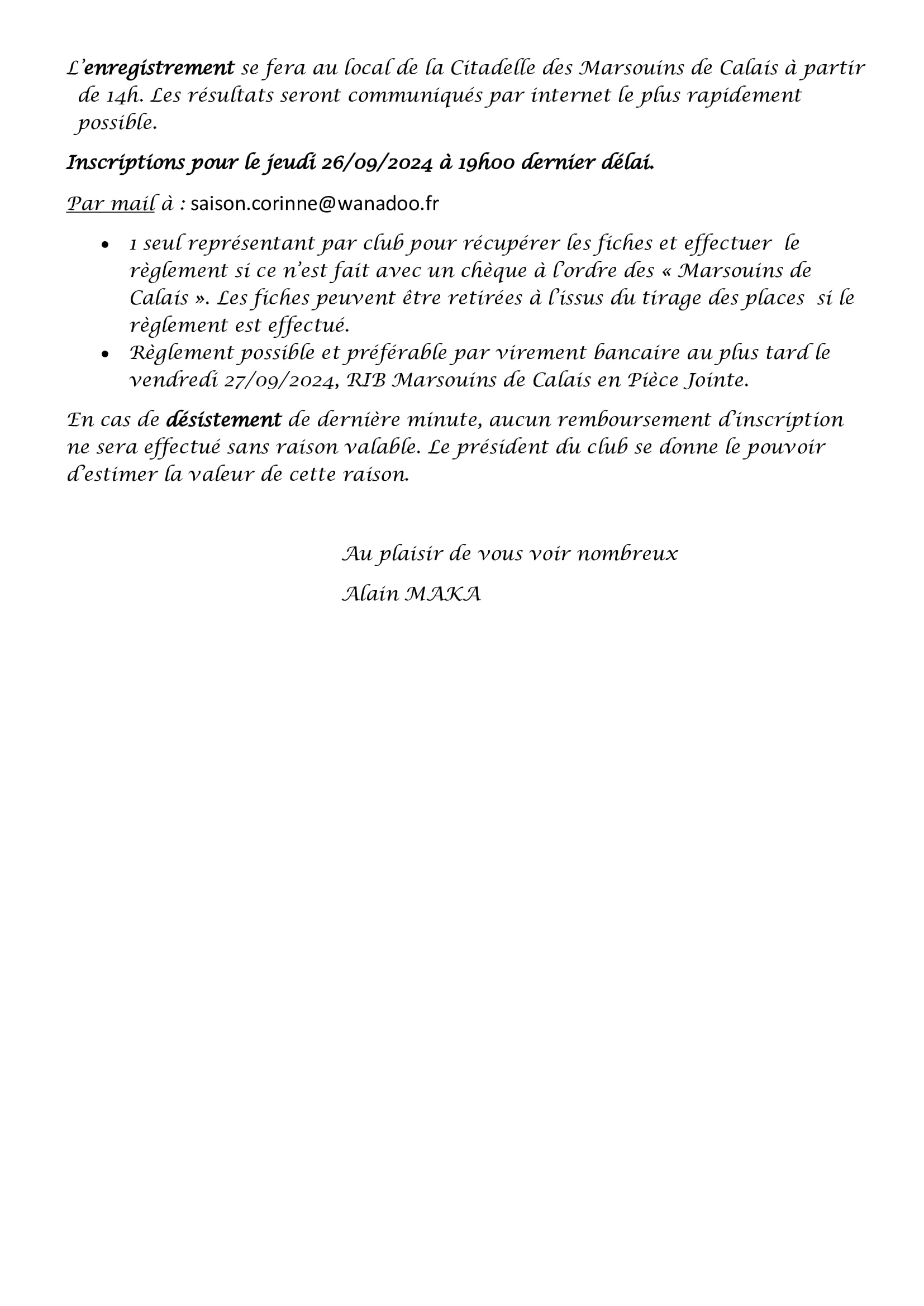 Fin des inscriptions le jeudi 26 septembre 2024 à 12h00.