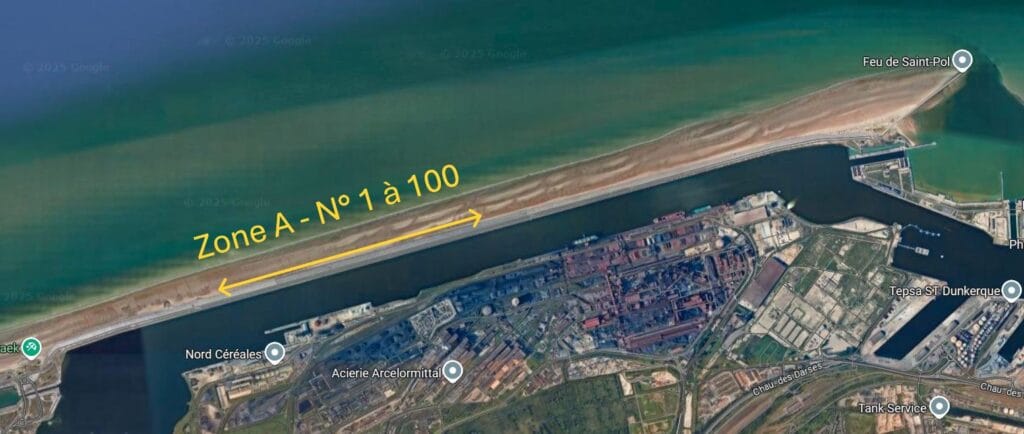 Zone A : Digue du Braek (N° 1 à 100)