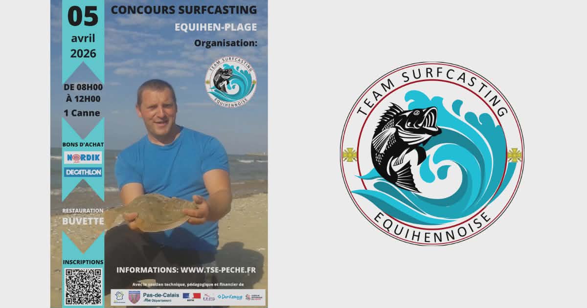 La Team Surfcasting Equihennoise organise un concours de pêche en Surfcasting ouvert à tous le dimanche 05 avril 2026 de 08h00 à 12h00 dans le Pas-de-Calais à Equihen-Plage.