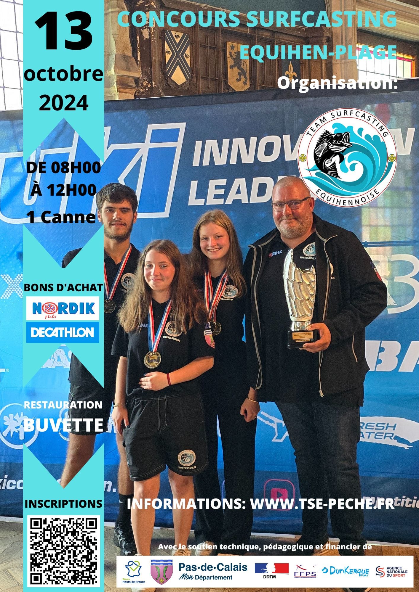 La Team Surfcasting Equihennoise organise un concours de pêche en Surfcasting ouvert à tous le dimanche 13 octobre 2024 de 08h00 à 12h00 dans le Pas-de-Calais à Equihen-Plage.