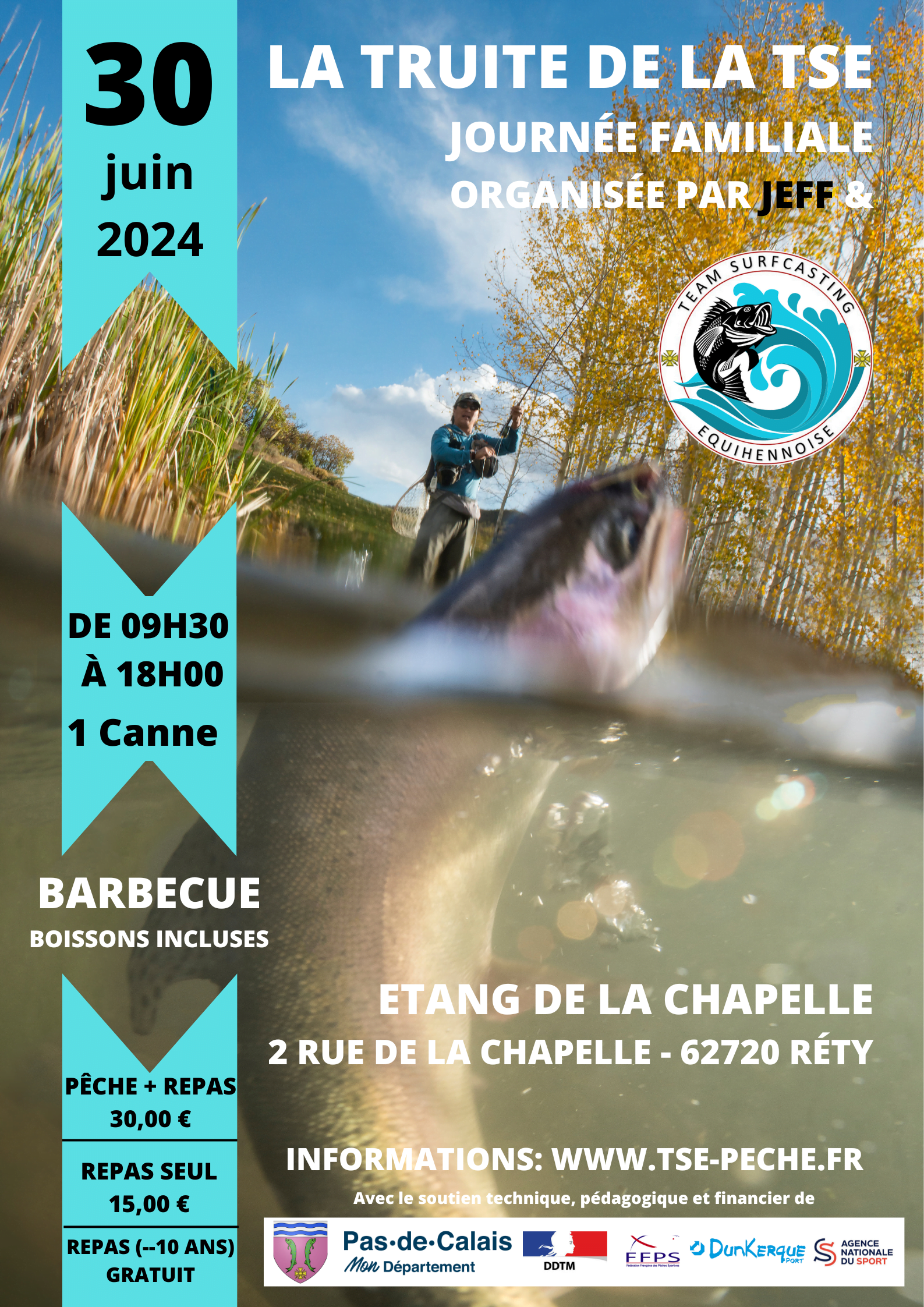 La Team Surfcasting Equihennoise organise une journée de Pêche à la truite le 30 juin 2024 à Rety