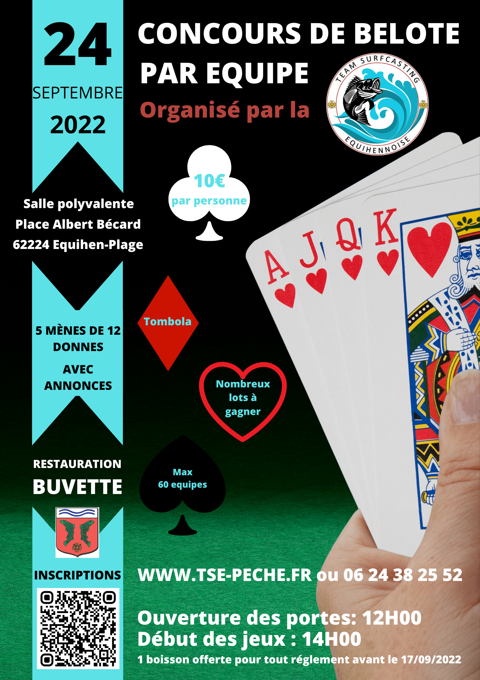 La Team Surfcasting Equihennoise a le plaisir d’organiser son 1er concours de belote.